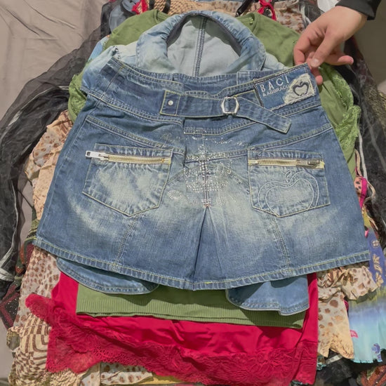 Os presentamos nuestro lote Mix de ropa Y2K de mujer. Gran variedad de prendas con estilo vintage/retro de los 2000s. En este lote entra un mix de prendas como faldas, tops, camisas, pantalones, etc. Este producto es perfecto para su posterior reventa en Vinted o para tiendas, dejando un buen margen de beneficio.